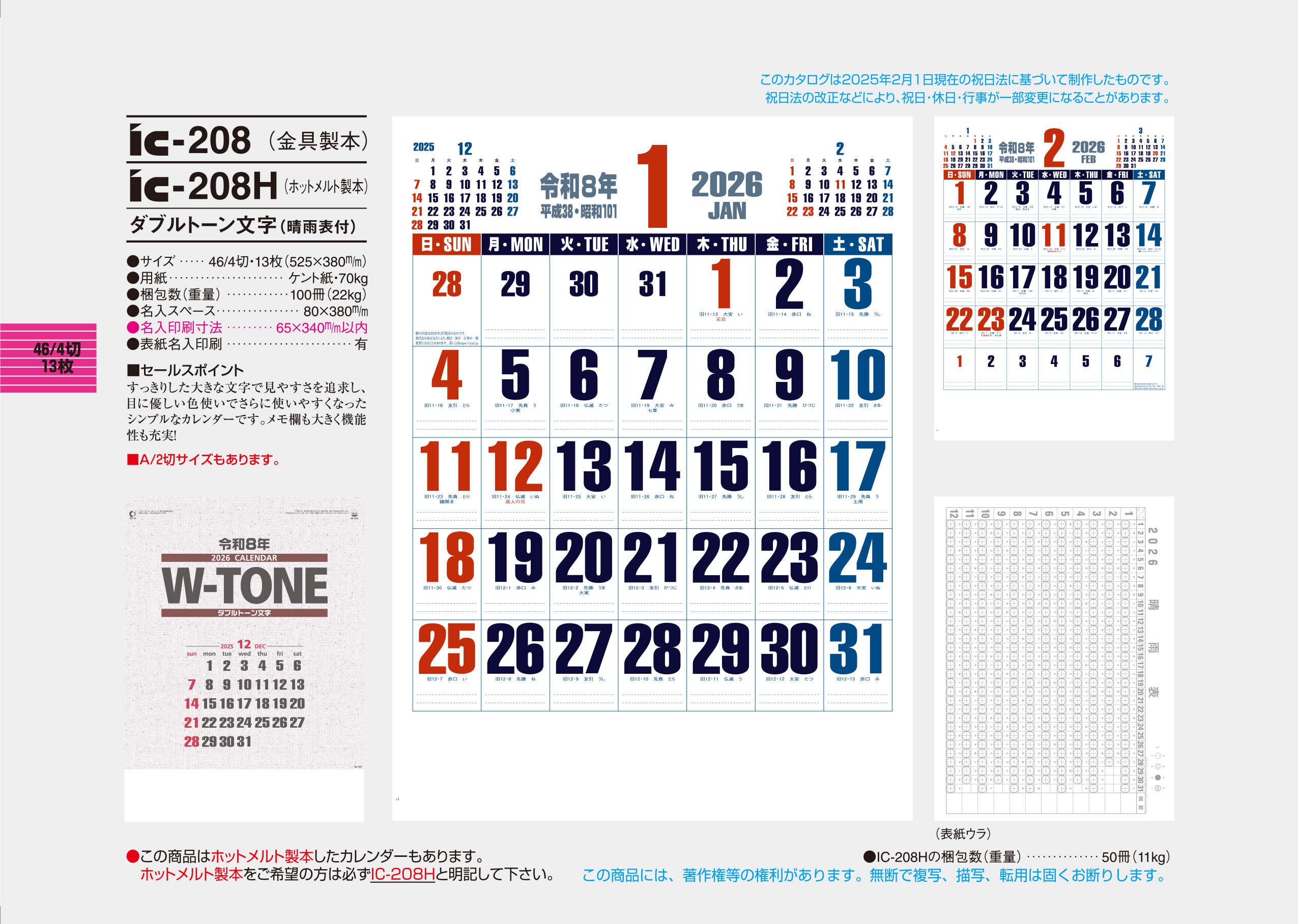 記載金額にはカレンダー本体・名入れ印刷代・版代・送料(一括納入、沖縄・北海道、一部地域を除く)が含まれます。