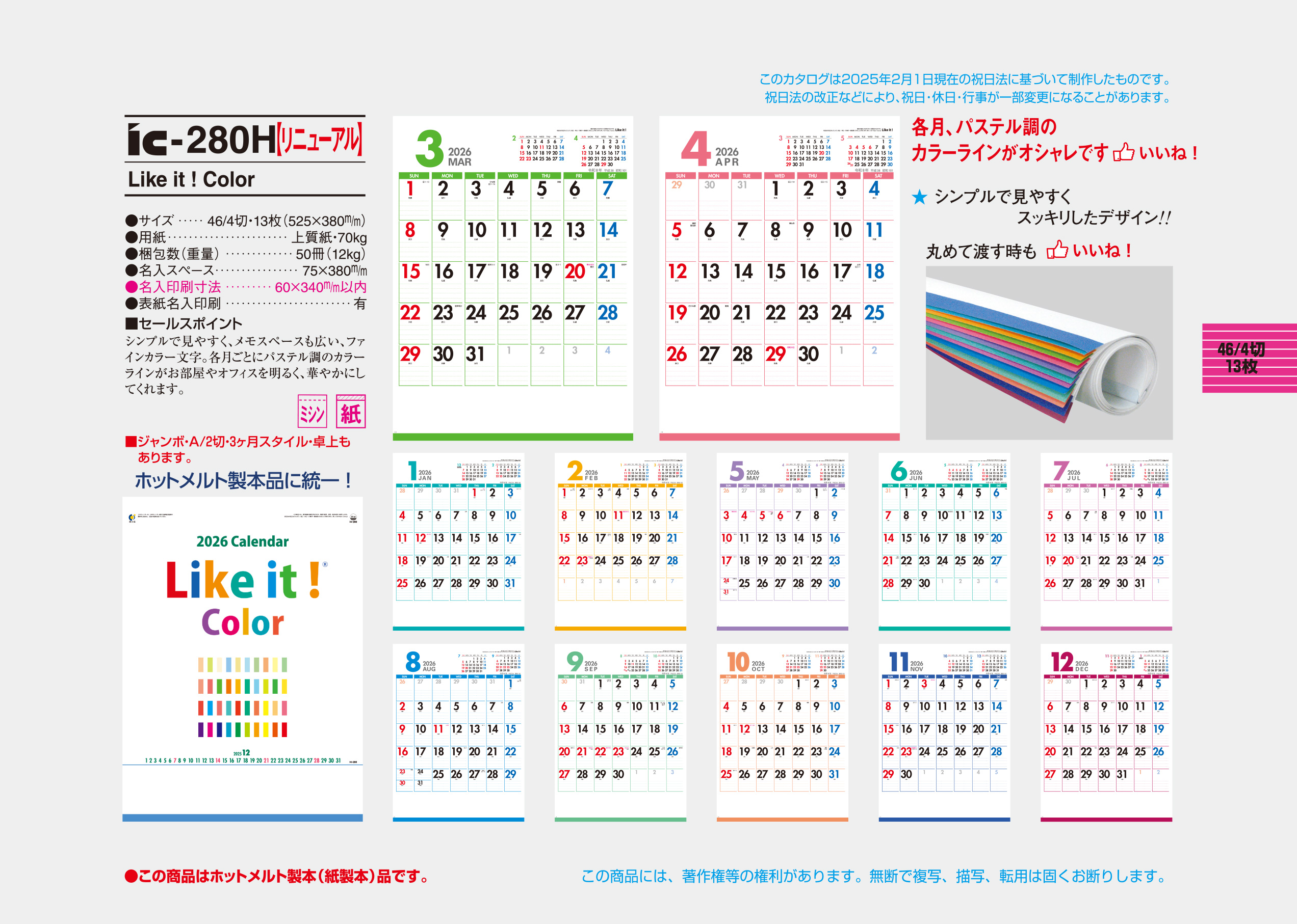 記載金額にはカレンダー本体・名入れ印刷代・版代・送料(一括納入、沖縄・北海道、一部地域を除く)が含まれます。