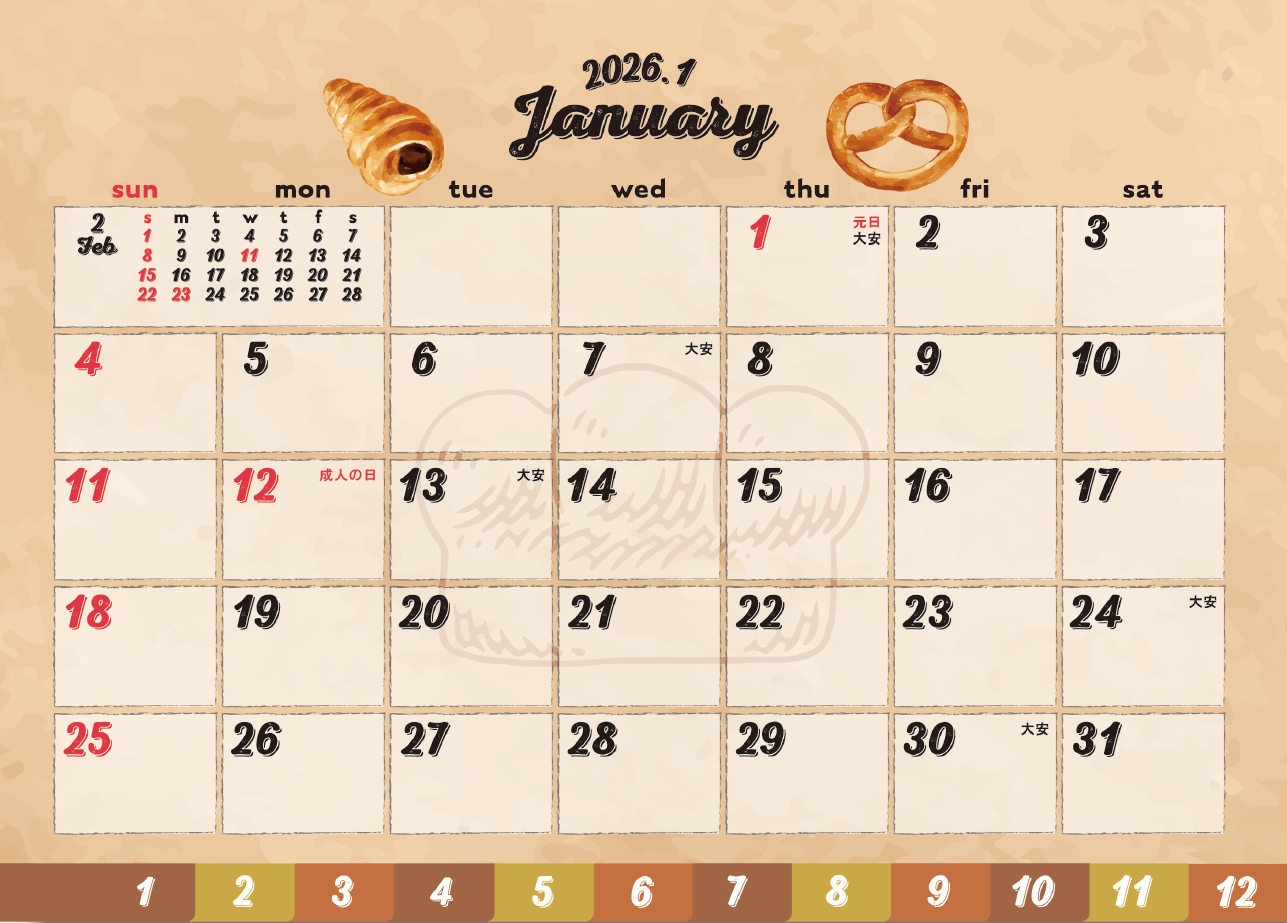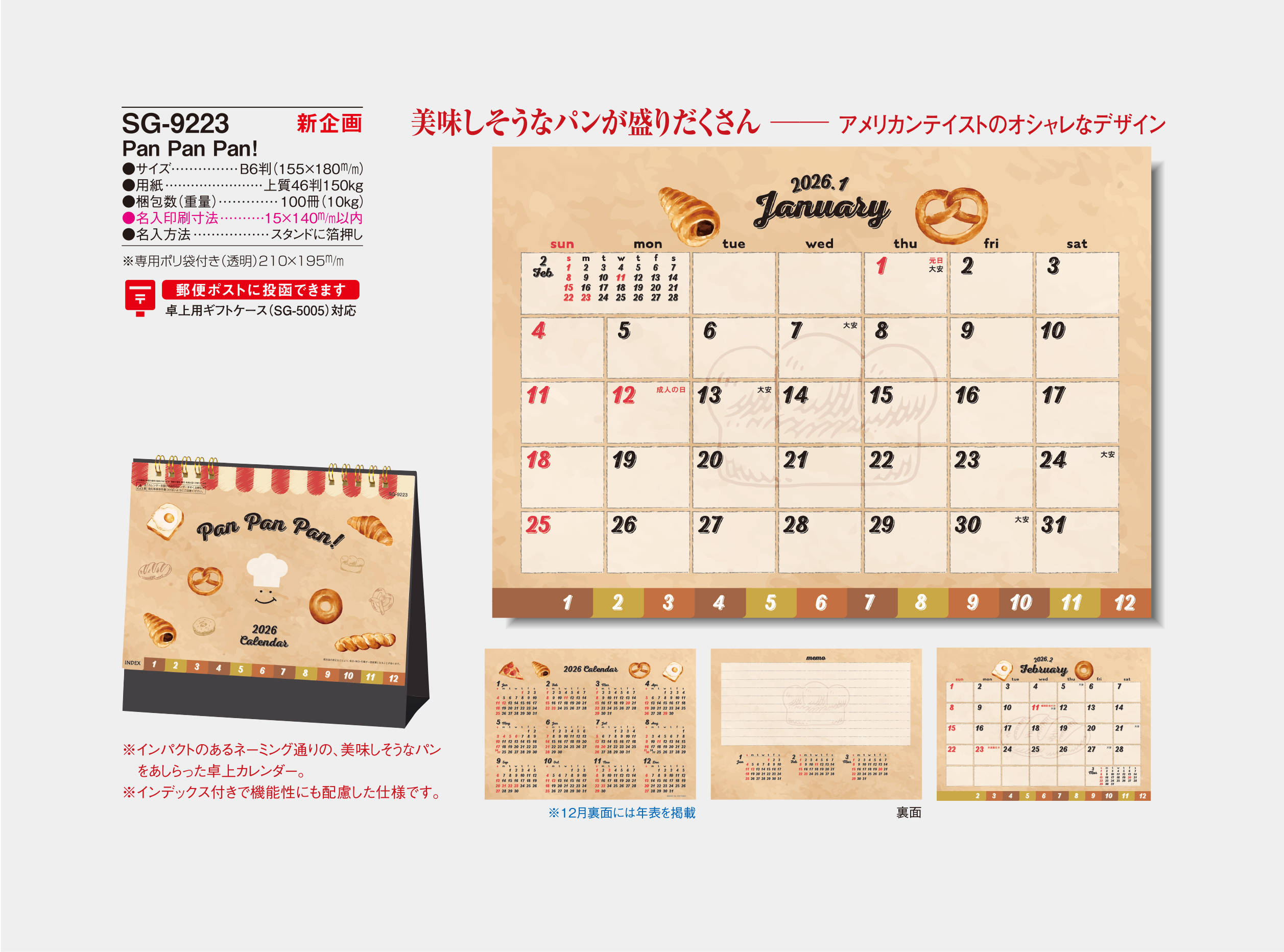 商品説明詳細 | インパクトのあるネーミング通りの、おいしそうなパンをあしらった卓上カレンダー。 |