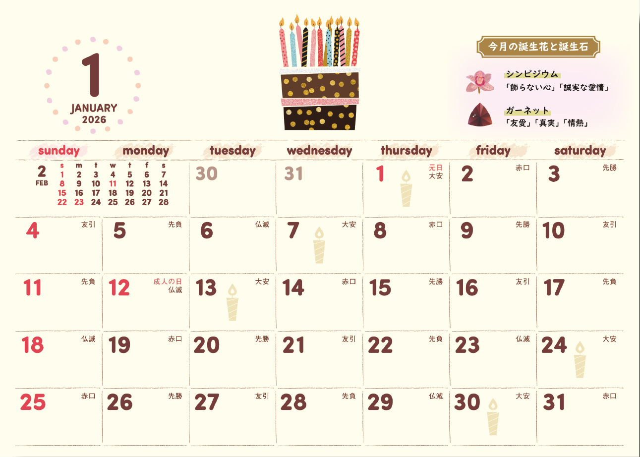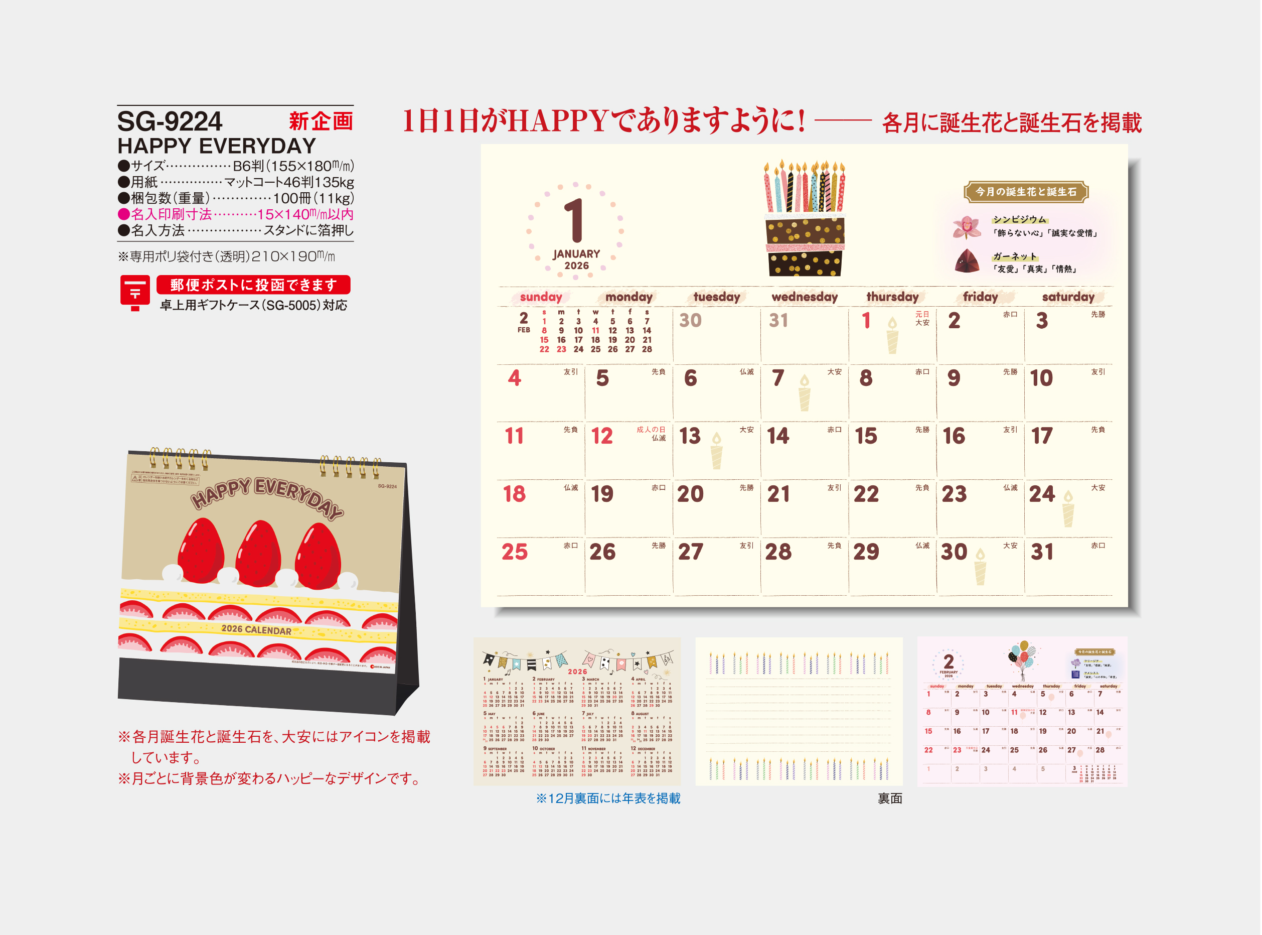商品説明詳細 | 月ごとに背景色が変わるハッピーなデザインです。 |