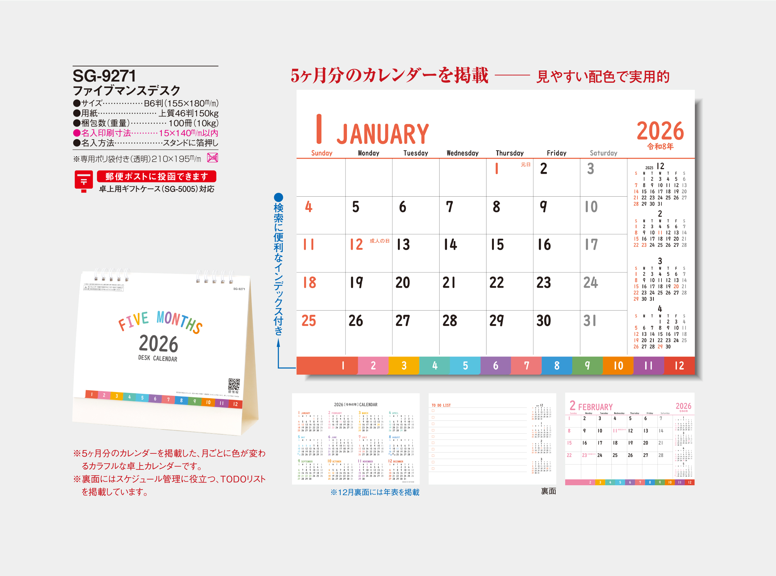 記載金額には、卓上カレンダー本体・箔押し印刷代・版代・送料(一括納入、沖縄・北海道、一部地域を除く)が含まれます。