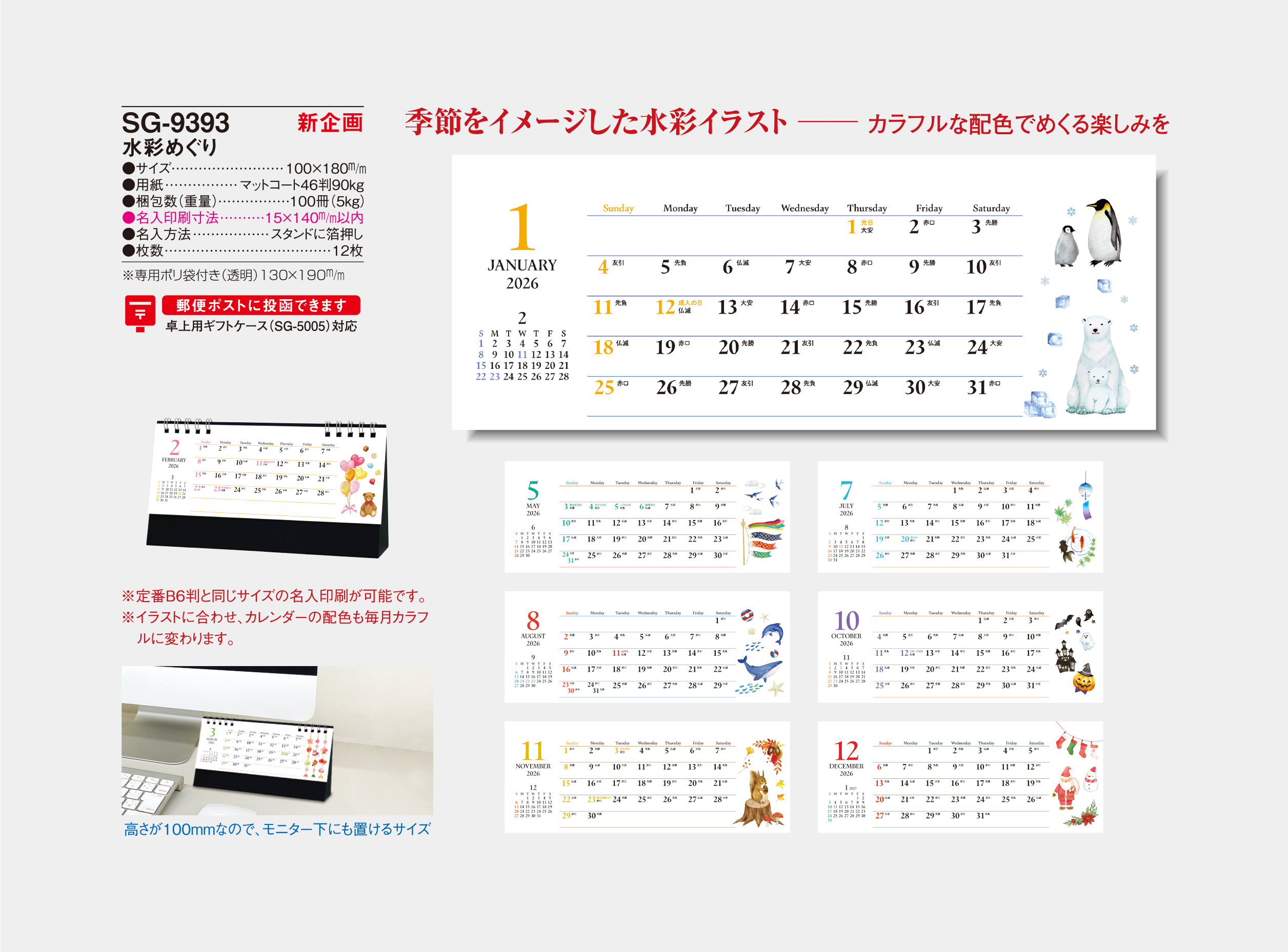- 記載金額には、卓上カレンダー本体・箔押し印刷代・版代・送料(一括納入、沖縄・北海道、一部地域を除く)が含まれます。