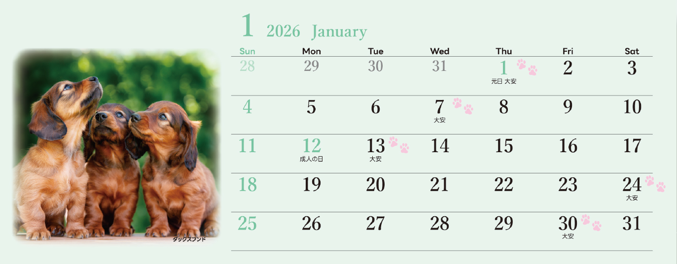 ※定番B6判と同じサイズの名入印刷が可能です。 大安の日に犬の足跡入りです。 |