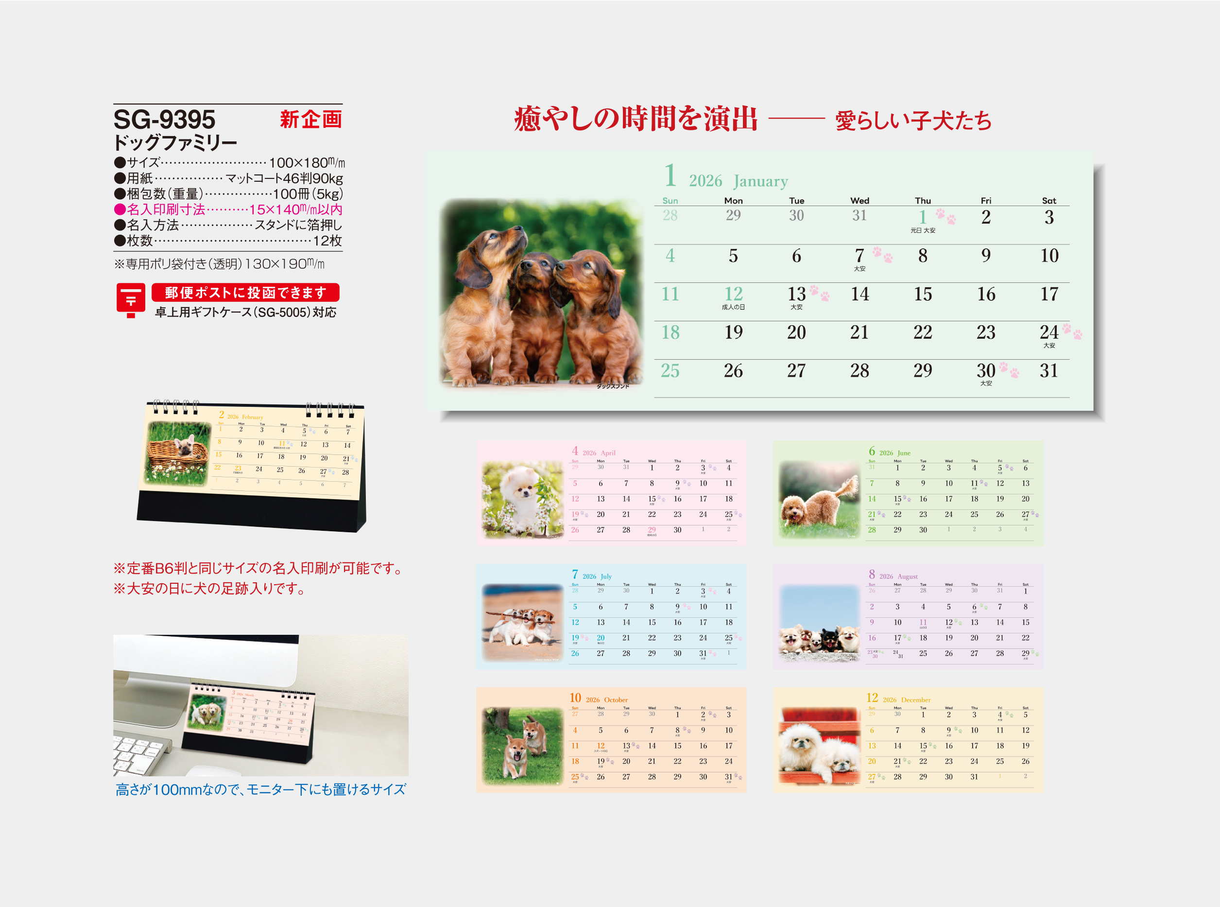 付属品 | 卓上カレンダー用 透明袋を添付します。※封入はお客様でお願いします。 |