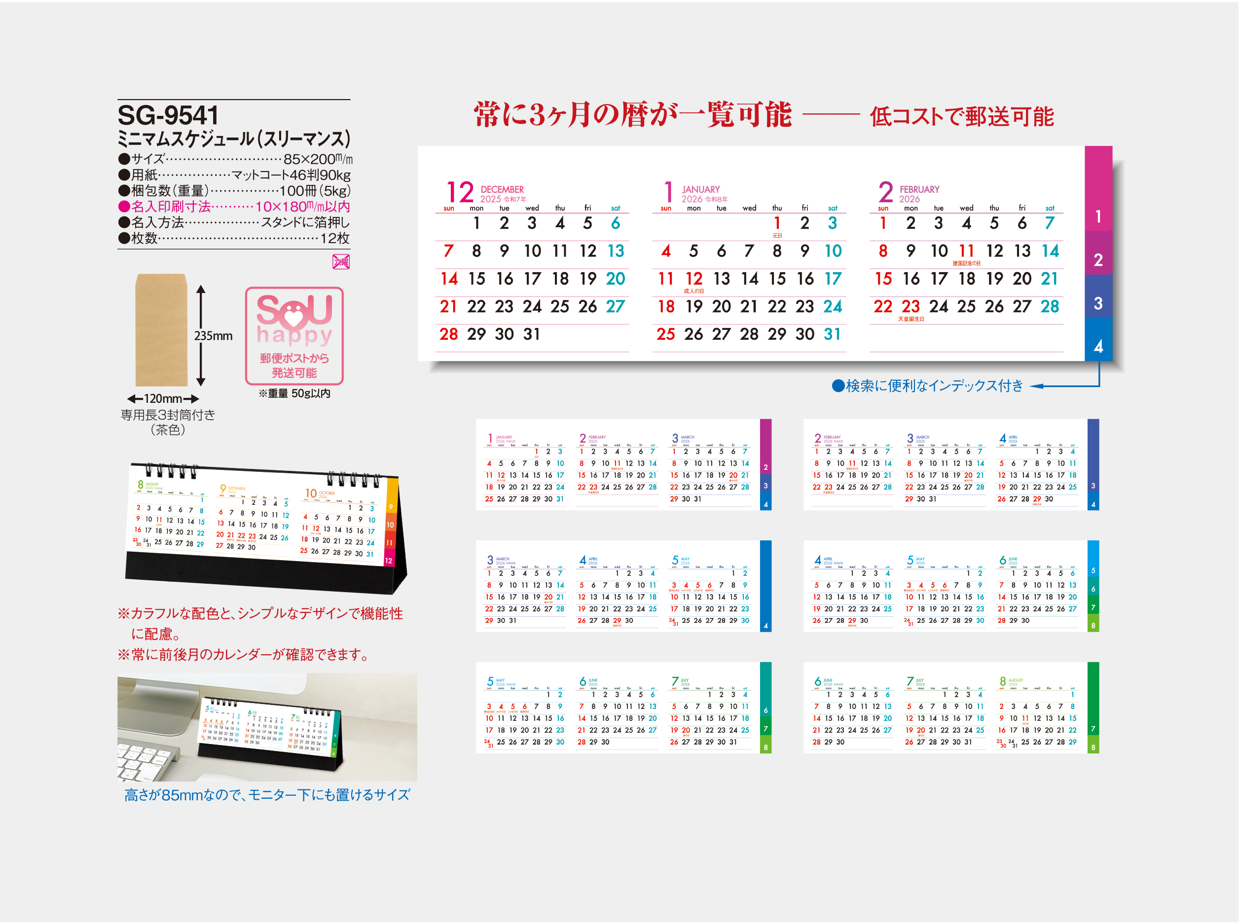 記載金額には、卓上カレンダー本体・箔押し印刷代・版代・送料(一括納入、沖縄・北海道、一部地域を除く)が含まれます。