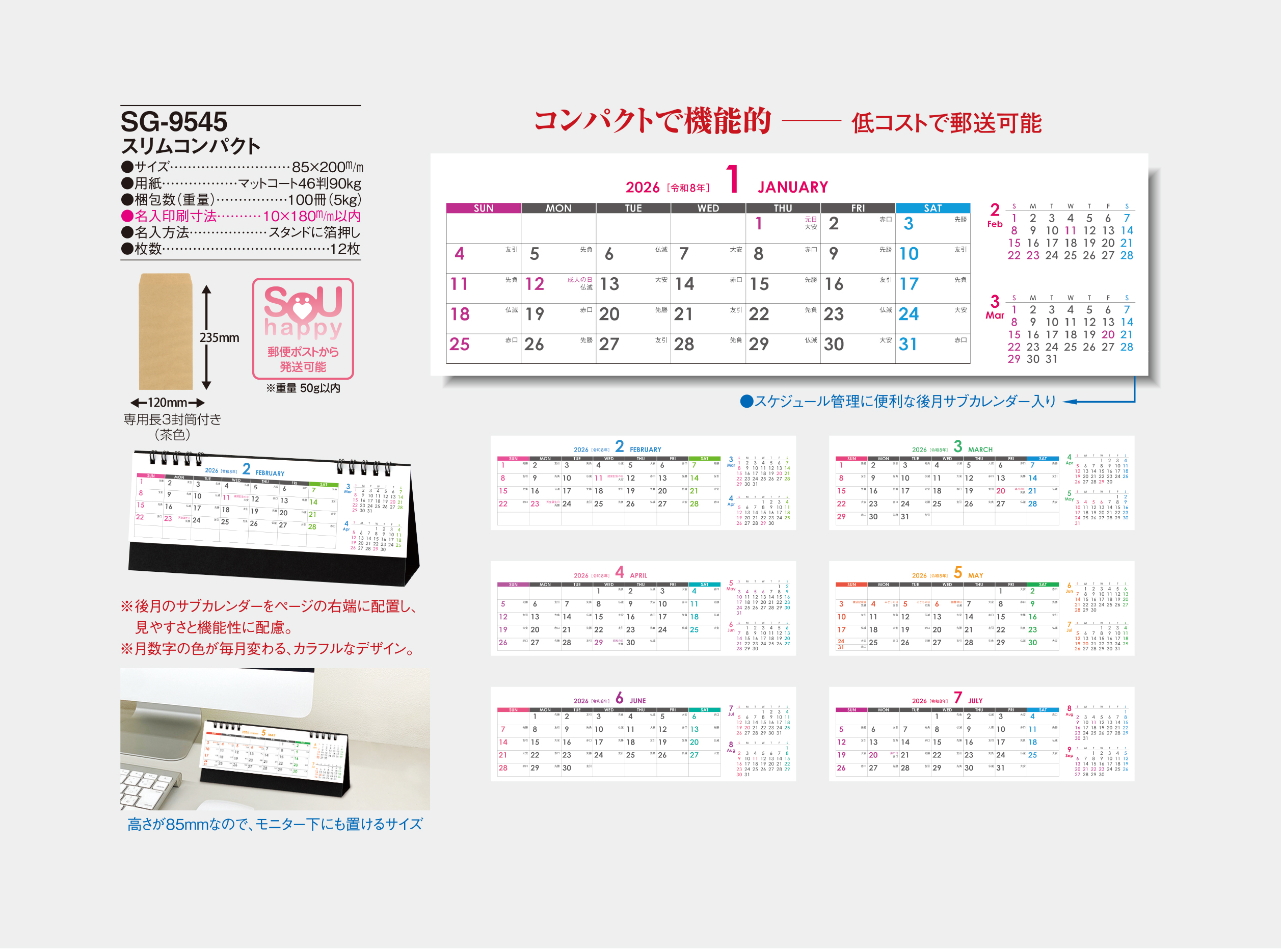 商品説明詳細 | 後月のサブカレンダーをページの右端に配置し見やすさと機能性に配慮しました。 |