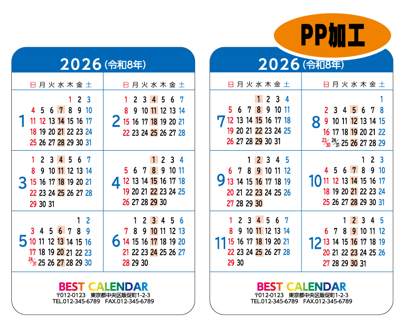 商品一覧 Home ※はじめてご購入される方は、ショッピングガイドをご覧になってからご注文して下さい。 絞り込み検索 キーワード カテゴリ 名入れ卓上カレンダー 表紙オリジナル卓上カレンダー オリジナル卓上カレンダー 名入れカレンダー ポケットカレンダー 日めくりカレンダー 名入れ卓上カレンダー(フルカラー) タグ 壁掛け 卓上 六曜無し ジャンボ 3か月・2か月 外国風景 日本風景 イラスト 開運・格言・名言 干支・七福神 花・庭・植物・盆栽 和風 動物・ペット 建築 芸術・日本画・洋画 キッズ・ファミリー 和装・スター 車・乗り物 健康 エコ・環境・SDGs 機能的 高級フィルム 日めくり フルカラー名入れ サイズ B2 A2 B3 A3 B4 B6 その他 1~30件 / 全939件 KP-01 Free color 100冊注文時 319 円/冊(税込) 注文ページへ KP-02 Rainbow color 100冊注文時 319 円/冊(税込) 注文ページへ 売り切れ KP-03 デスクトップスケジュール 100冊注文時 319 円/冊(税込) 注文ページへ KP-04 ラブリーフレンズ(犬・猫) 100冊注文時 413 円/冊(税込) 注文ページへ KP-05 カノン 100冊注文時 413 円/冊(税込) 注文ページへ KP-06 一粒万倍日カレンダー 100冊注文時 501 円/冊(税込) 注文ページへ KP-101 オリジナル卓上カレンダー(ペーパーリング式・両面印刷×7枚) 注文ページへ KP-102 オリジナル卓上カレンダー(ペーパーリング式・片面印刷×13枚) 注文ページへ KP-103 オリジナル卓上カレンダー(ペーパーリング式・両面印刷×13枚) 注文ページへ KP-104 オリジナル卓上カレンダー(プラスチックケースタイプ・ハガキサイズ・両面印刷×7枚) 注文ページへ KP-105 オリジナル卓上カレンダー(プラスチックケースタイプ・ハガキサイズ・片面印刷×13枚) 注文ページへ KP-106 オリジナル卓上カレンダー(プラスチックケースタイプ・ハガキサイズ・両面印刷×13枚) 注文ページへ KP-107 オリジナル卓上カレンダー(CDサイズ・両面印刷×7枚) 注文ページへ KP-108 オリジナル卓上カレンダー(CDサイズ・片面印刷×13枚) 注文ページへ KP-109 オリジナル卓上カレンダー(CDサイズ・両面印刷×13枚) 注文ページへ KP-201 表紙オリジナル卓上カレンダー 100冊注文時 1,133 円/冊(税込) 注文ページへ KP-202 表紙オリジナル卓上カレンダー(フルカラー名入れ) 100冊注文時 545 円/冊(税込) 注文ページへ KP-203 表紙オリジナル卓上カレンダー(フルカラー名入れ) 100冊注文時 545 円/冊(税込) 注文ページへ KP-301 ポケットカレンダー(休日対応可) 100枚注文時 88 円/枚(税込) 注文ページへ KP-302 カードカレンダー名刺サイズ(休日対応可) 100枚注文時 87 円/枚(税込) 注文ページへ KP-303 ポケットカレンダー両面PP加工 100枚注文時 175 円/枚(税込) 注文ページへ KP-304 カードカレンダー(名刺サイズ)両面PP加工 100枚注文時 146 円/枚(税込) 注文ページへ KP-305 企業休日カレンダー両面PP加工 100枚注文時 208 円/枚(税込) 注文ページへ KP-306 企業休日カレンダー(名刺サイズ)両面PP加工 100枚注文時 179 円/枚(税込) 注文ページへ KP-307 企業休日カレンダー1月始まり 両面PP加工 100枚注文時 208 円/枚(税込) 注文ページへ KP-308 企業休日カレンダー1月始まり(名刺サイズ)両面PP加工 100枚注文時 179 円/枚(税込) 注文ページへ KP-701 Free color(フルカラー名入れ) 100冊注文時 435 円/冊(税込) 注文ページへ KP-702 Rainbow color(フルカラー名入れ) 100冊注文時 435 円/冊(税込) 注文ページへ KP-703 デスクトップスケジュール(フルカラー名入れ) 100冊注文時 435 円/冊(税込) 注文ページへ SG-101 短冊 数字月表 紐付 100冊注文時 252 円/冊(税込) 注文ページへ